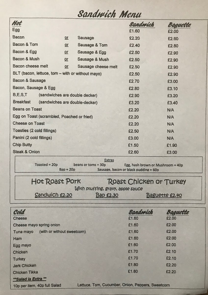 - Cold Selections: Indulge in sandwiches like Tuna Mayo, Jerk Chicken, or a classic Ham sandwich, all starting at just £2.00.